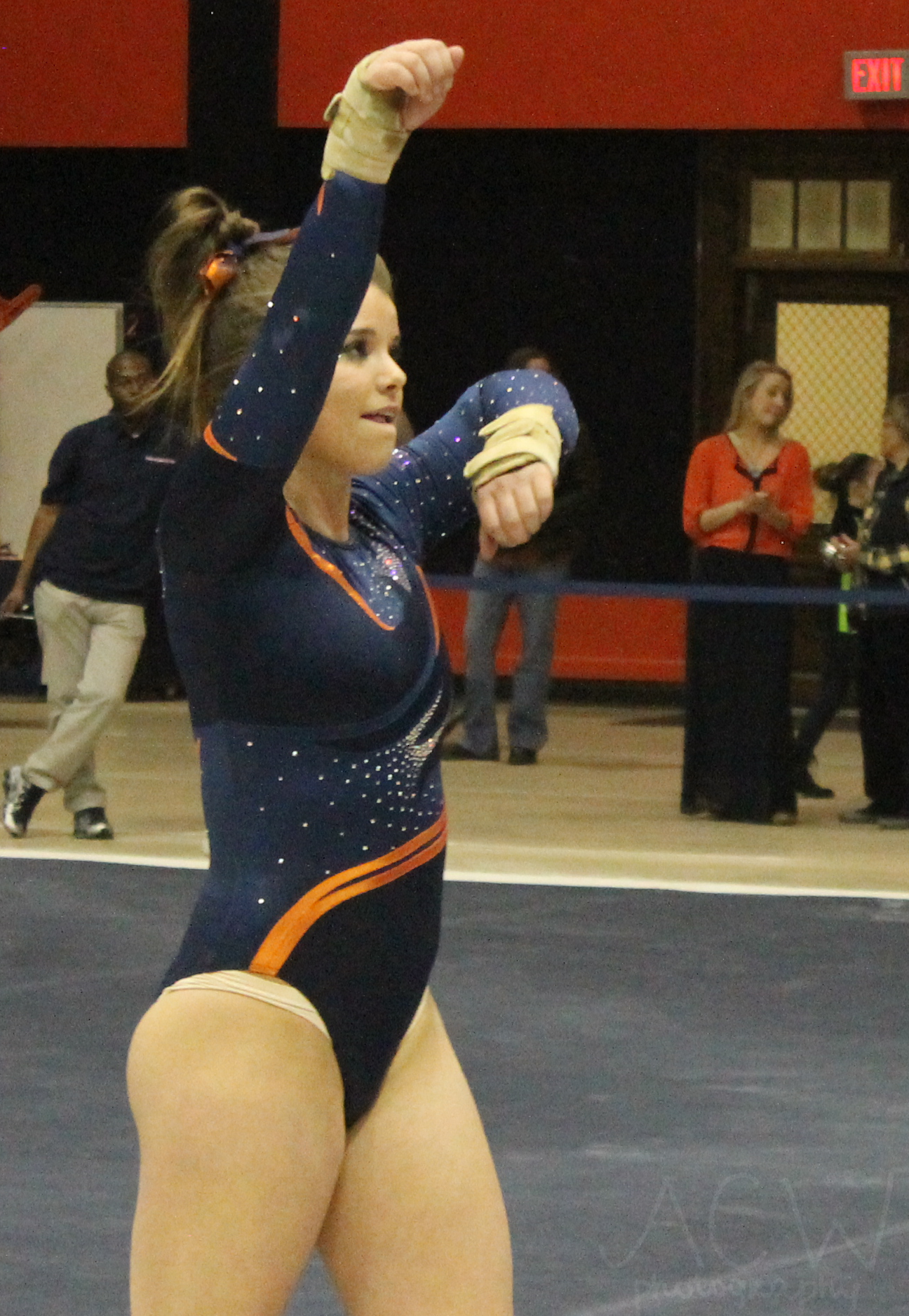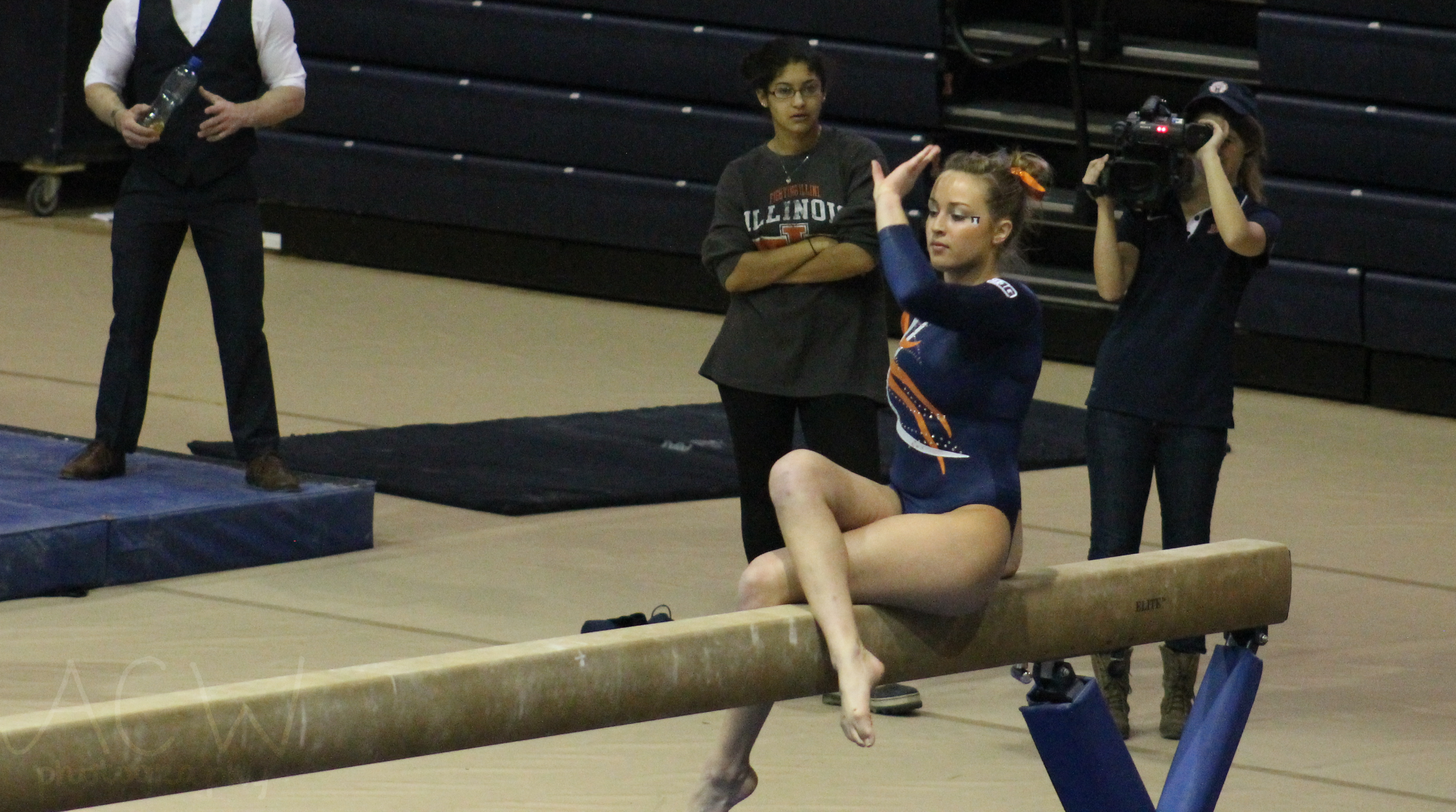 Jordyn Givens of Keller, Texas, recovered from an elbow injury, but competed for the Illini right away on vault. Bridget Hodan of Brookfield, Wisconsin, hurt her femur during the school year after competing at the annual Orange and Blue Exhibition in December. The newest addition to the team, Becca Cuppy of Ankeny, Iowa, joined the Illini for the spring semester and returned from a stress fracture in her foot.