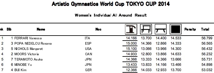 2014 Tokyo World Cup All Around Results: