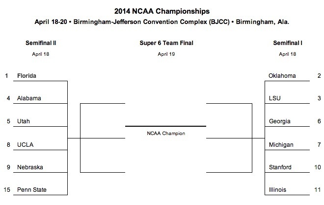 The Crimson Tide earned their trip to Birmingham with a victory at the Seattle Regional, Patterson’s 1,000 career win. The Crimson Tide will face Utah, UCLA, Penn State, Nebraska and defending NCAA Champions Florida in the evening semifinal session. "We've competed against Florida and Nebraska twice this season and we're very familiar with Utah, UCLA and Penn State," Patterson said. "They're all great teams and we're going to have to be at our best to advance to the Super Six. That's what makes this championship so exciting - you have to be at your best if you want to advance."