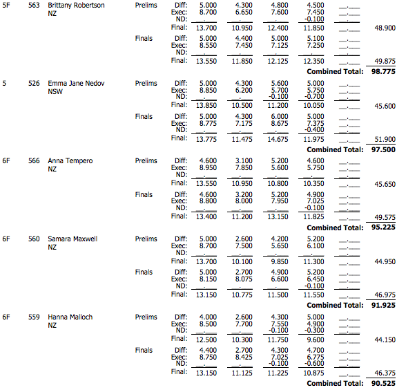 Last year’s champion, Madelaine Leydin of Victoria, was second in the all-around competition with a combined total of 105.225, while her teammate Kiara Munteanu came third with 104.725.