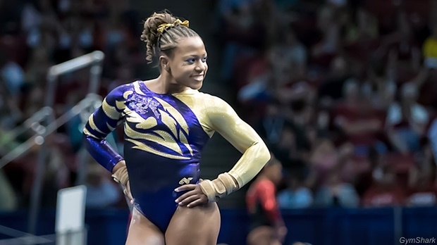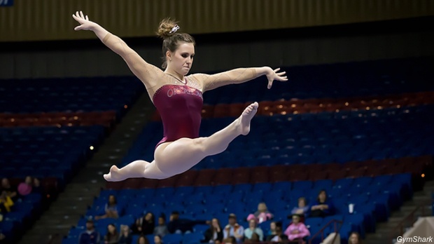 There is a tie for No. 1 on floor between LSU's Lloimincia Hall and California's Toni-Ann Williams and a tie for No. 3 between Scaman and Denver's Nina McGee. There haven't been any perfect 10s yet this season but there have been many close routines and many 9.975s. As a team, Oklahoma is No. 1 with a 49.43 RQS.