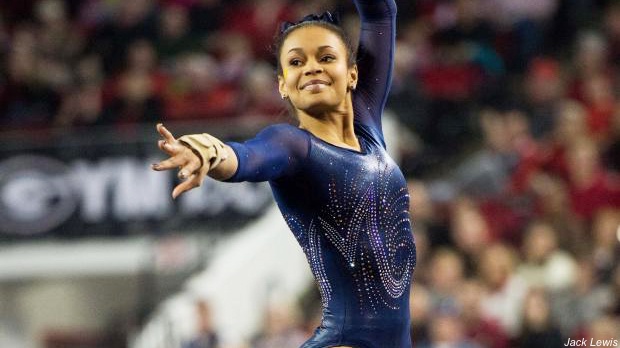 Brenna Dowell was always known in the elite world for the high difficulty in her bar routines. She's carried her skills over well to the collegiate world, where she's already scored a perfect 10 as a freshman. She's currently ranked No. 9 in the country and has a seasonal average of 9.844. Highlights from her routine include a Church (toe-on piked Tkatchev) and a huge full twisting double layout dismount.