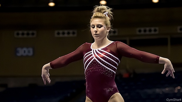 This week, our stellar senior is Oklahoma Sooner, Erica Brewer. Erica is one of Oklahoma’s top all around gymnasts who has achieved huge scores for the team since her freshman season. Erica is originally from Louisville, Kentucky and trained at Champion Gymnastics under Tiffani Orem. She rose to prominence in Kentucky gymnastics, being an eight-time state champion and being named the 2009 Kentucky Gymnast of the Year. Erica also made a splash on the national stage, qualifying to the J.O. National Team and winning the beam championship one year and placing third in the All-Around at J.O. Championships. Erica was highly sought after in the collegiate world, and was recruited by Auburn, LSU, Alabama, N.C. State, Illinois, Michigan and Nebraska, in addition to Oklahoma.