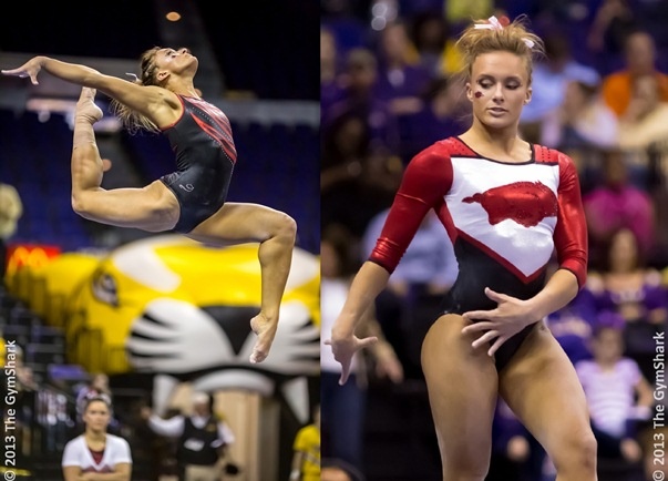 Arkansas will qualify in the eleventh slot. The Razorbacks have their problems and they're a longshot, but they are also capable of getting hot on a given night and scoring a high 196 or 197. They recently scored 197.10 vs. Alabama. If they crash and burn at regionals, it will probably be bars and beam that are their undoing.