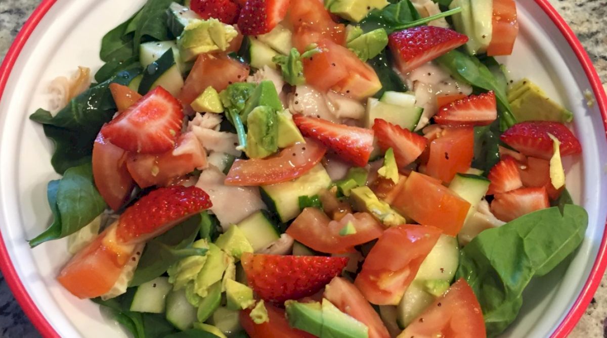 3 cups of mixed green salad, Add 4 ounces of low-sodium turkey, chop up 1 cup red, yellow and green peppers. 2 tbs feta cheese or goat cheese and 1 tbs apple cider vinegar and 1 tbs olive oil. Toss well.